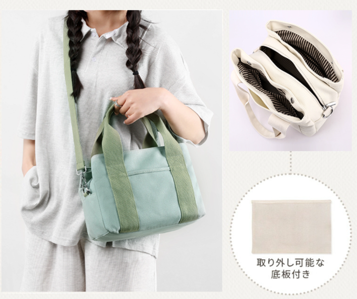 内側仕切り付きキャンバスミニトートバッグ